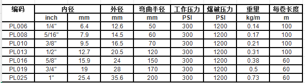 配合专用推进式接头,免卡箍紧固。软管不导电,在1000伏直流电压下,每英寸长度的最小电阻高于1兆欧姆。软管适合动态曲饶及耐磨场所。
